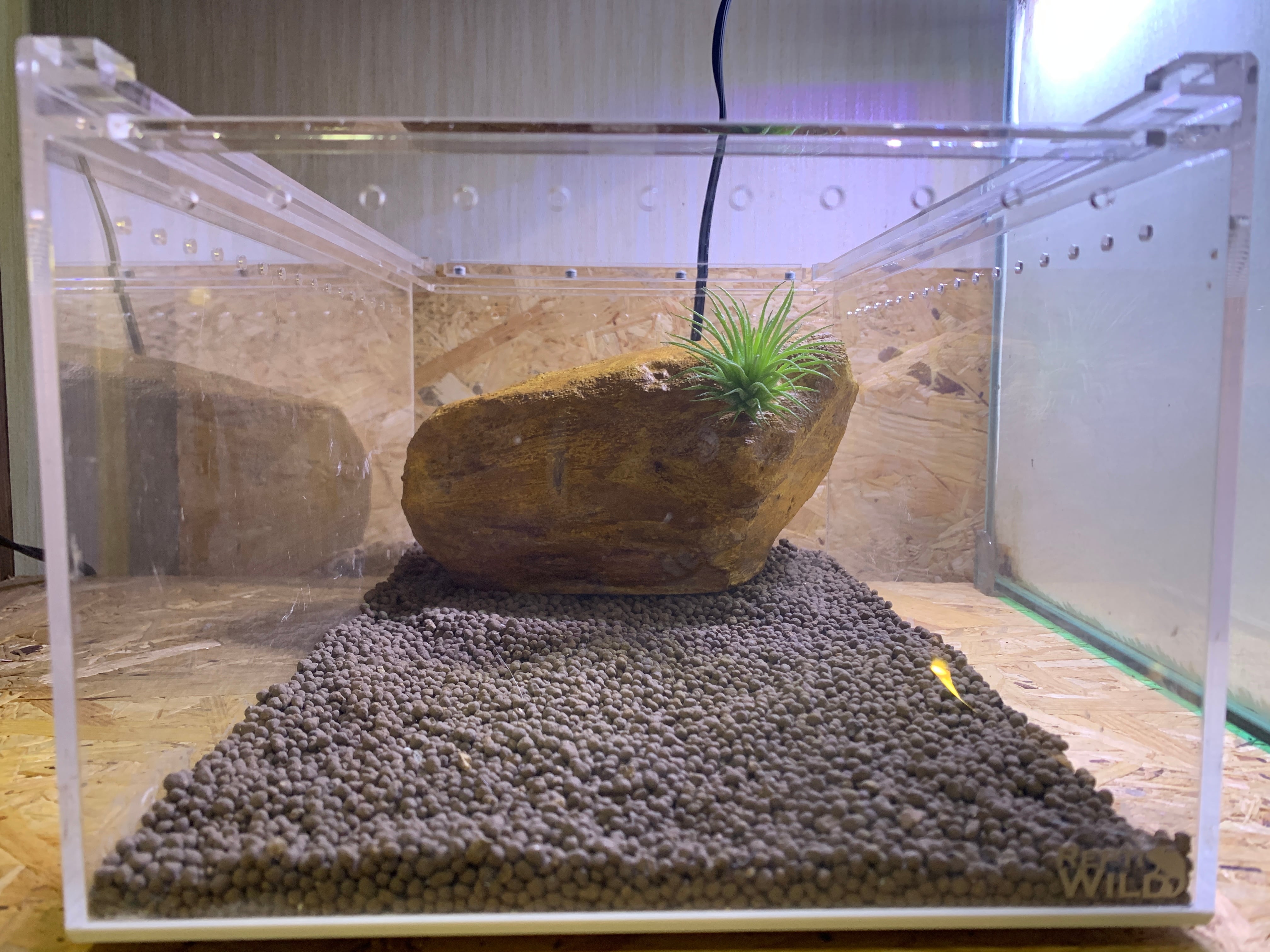 レプタイルボックスに入りますが床材を厚く敷くと上まで登れないので高さ20cm以上のケージで使うのがオススメです。